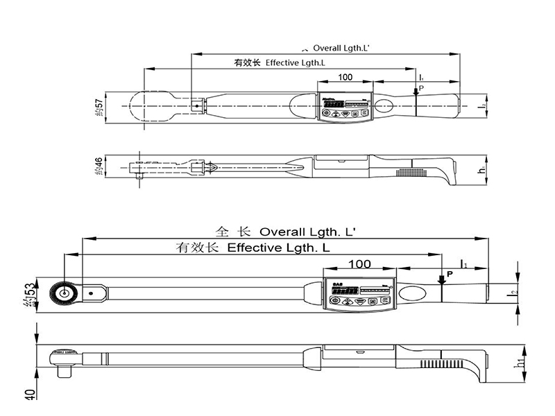 | 型號 | 有效長 | 全長 | 手柄長度 |